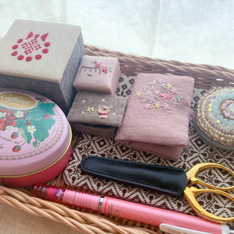 また、仕立てが簡単であってもお手拭きやカバーなどとして暮らしに役立つ道具を作ることができます。時間をかけて作ったものを暮らしに取り入れる贅沢さを知れば、刺繍はとても身近な幸せになることでしょう。