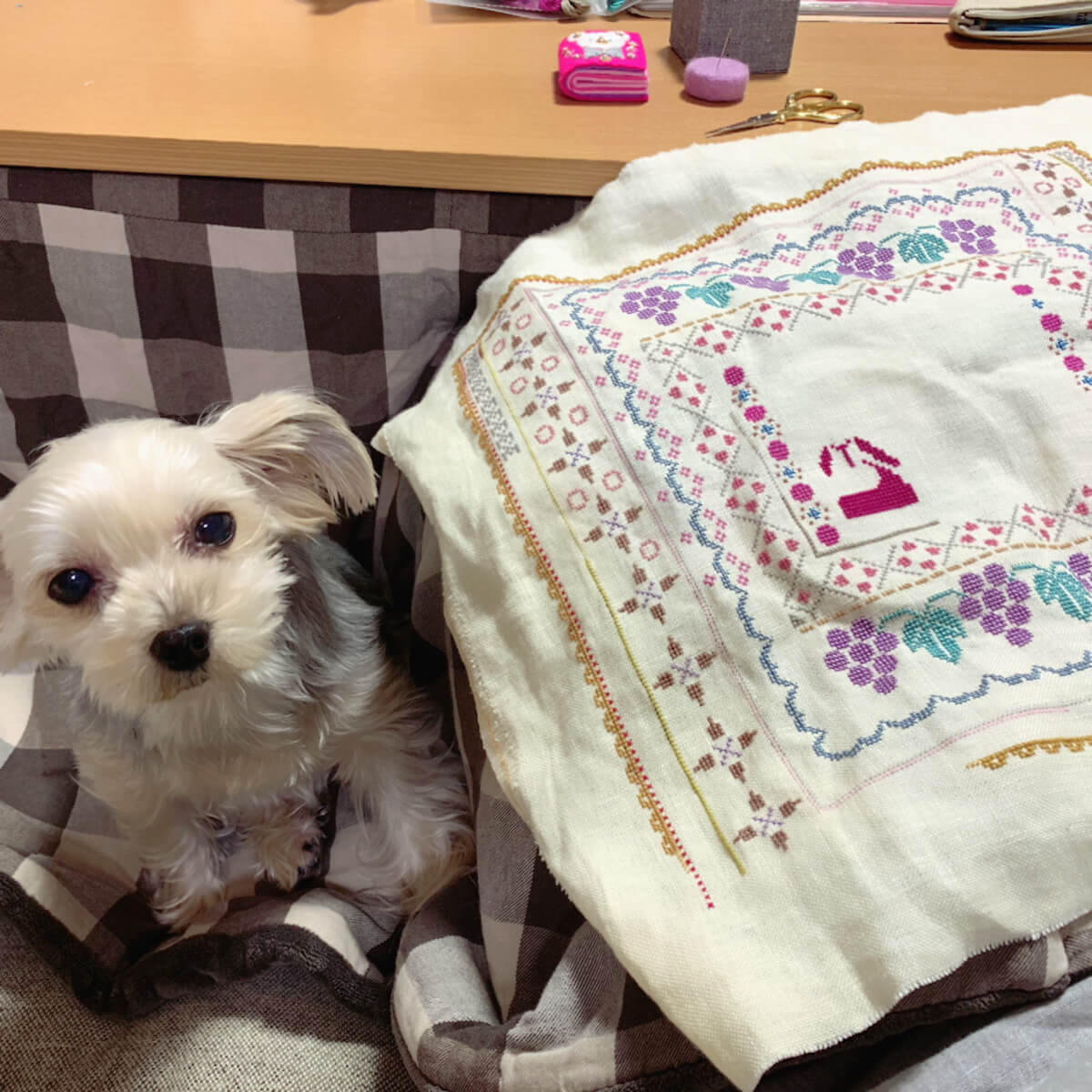 この写真に写っているのは、以前住んでいたマンションのダイニングテーブルと刺繍糸の棚。この景色が懐かしいです。手を動かしていた時間も、過ごしていた場所も、リアルに思い出せる1枚です。