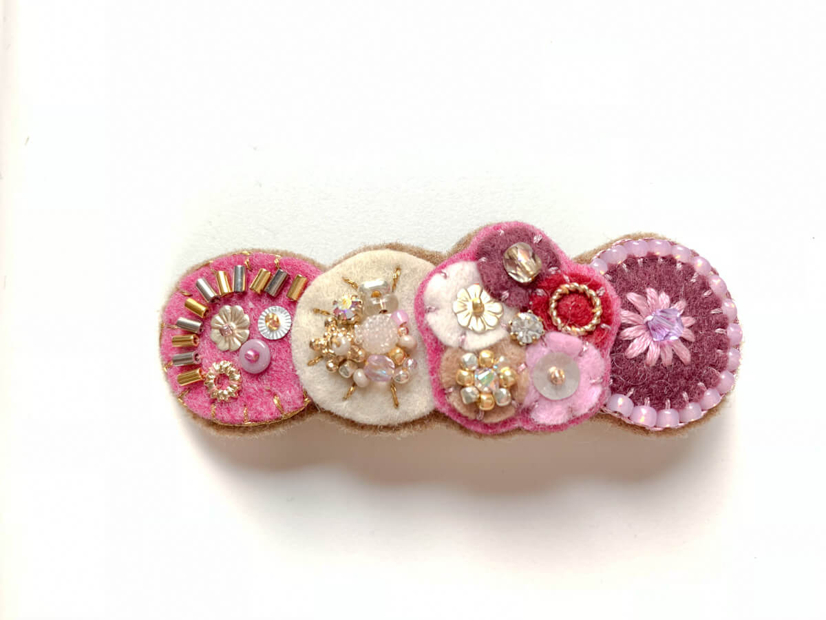 作品名「KAZARI」。ブローチにもクリップにもなる2way仕様のアクセサリーです。