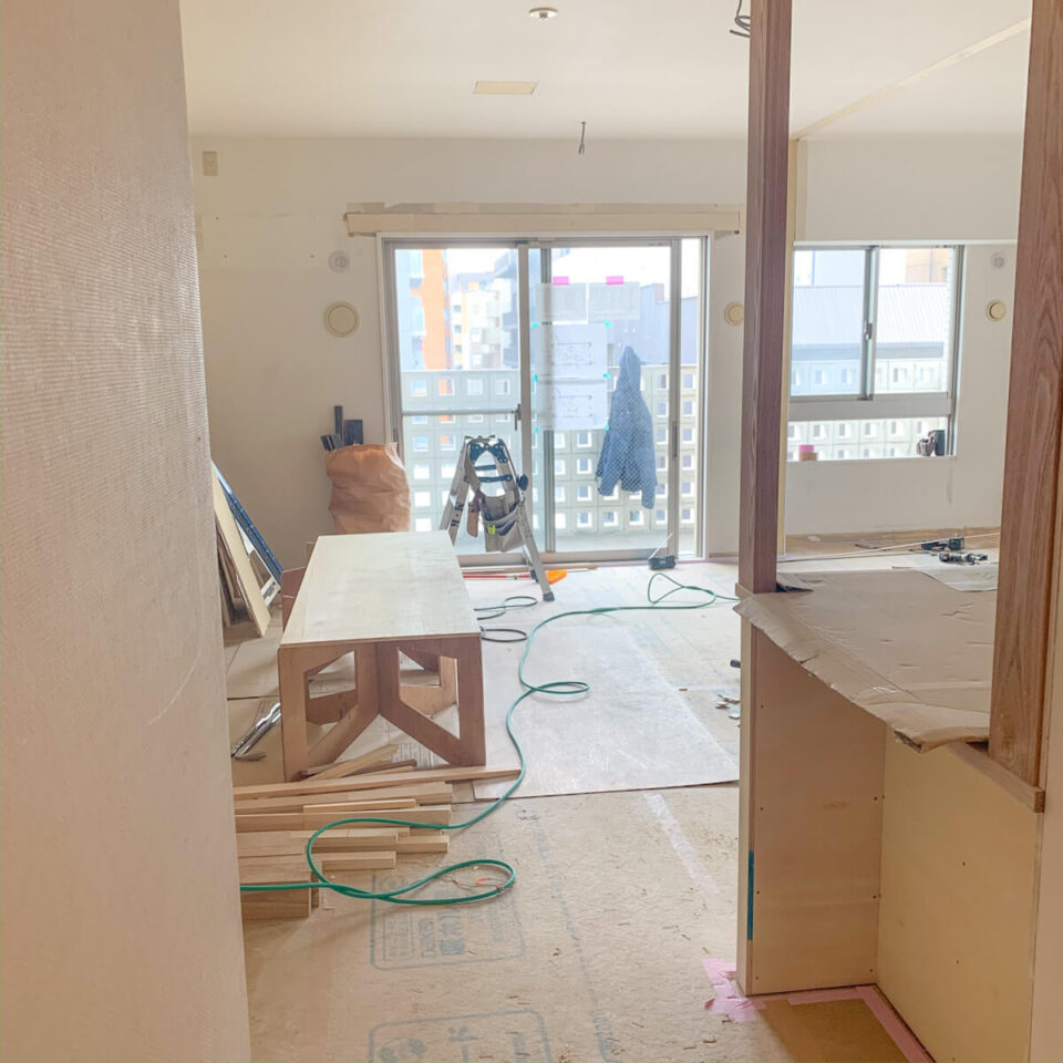 大工さんに手伝ってもらいながら自分で…というのに憧れがありましたが、短期間で作業を終わらせたいことを思うとそれは叶わず、棚のサイズなどをリクエストするまでで精一杯でした。