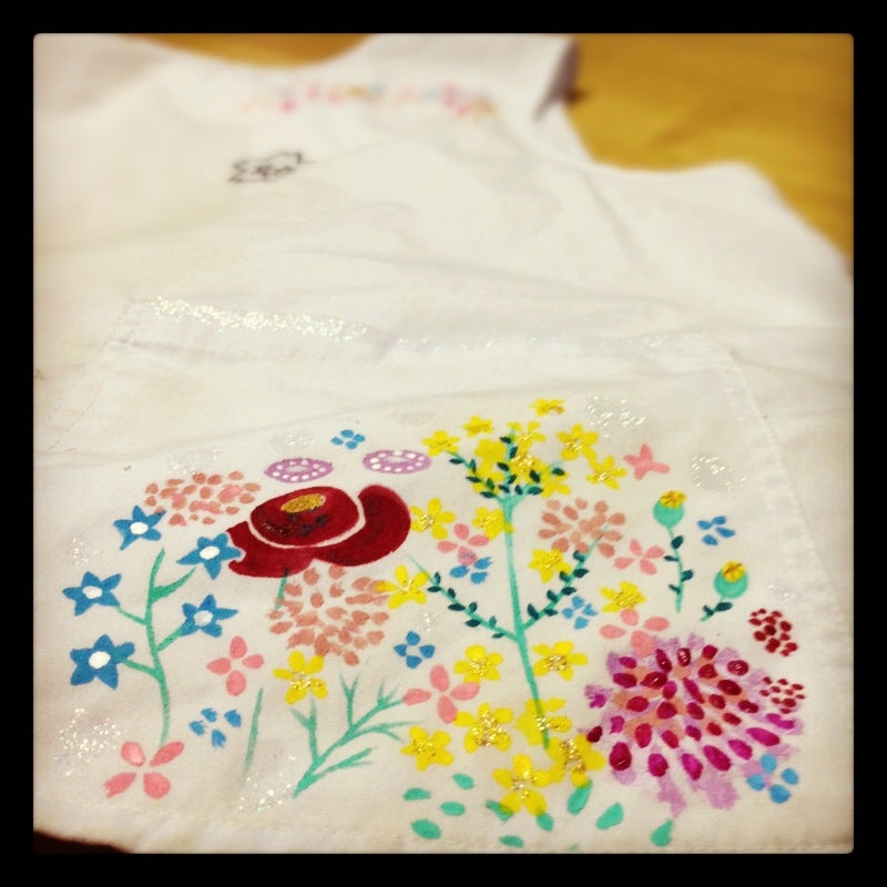 Instagramが消えてしまったのでこの頃の作品写真がとにかくないのです…ここでは代わりに、当時の園エプロンに私が描いたお花の写真を